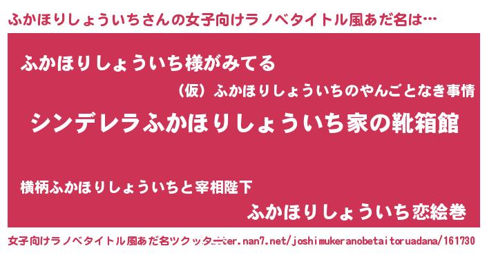 | 男性向けラノベタイトル風あだ名 | 『緋弾のフカホリショウイチ』 |