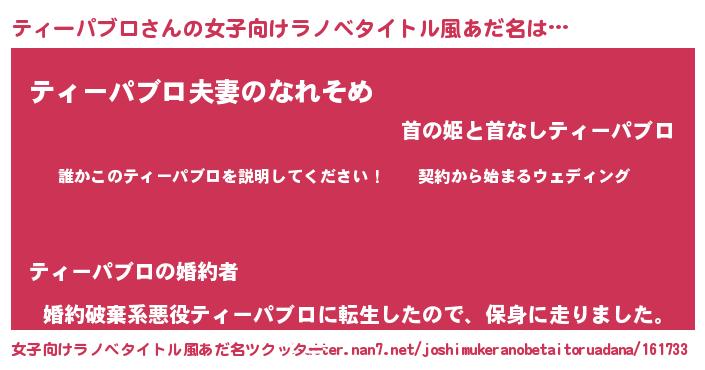 | ヘコむあだ名 | 『ティにゅー』『牛乳』『ティぷりん』 |