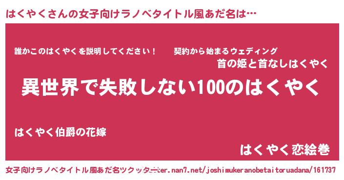 | 男性向けラノベタイトル風あだ名 | 『はくやくという概念が存在しない退屈な世界 』 |