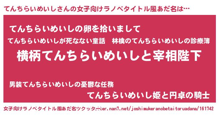 | 胡散臭い通販商品みたいなあだ名 | 『伝統あるペンダント…その名も「てんちらいめいし」』 |