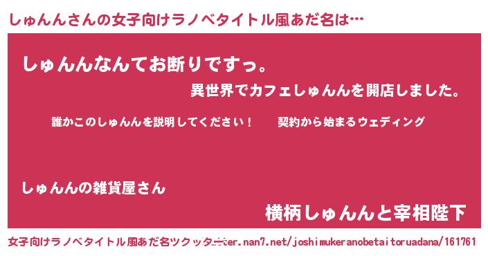 | 胡散臭い通販商品みたいなあだ名 | 『億万長者になれるブレスレット…その名も「しゅんん」』 |