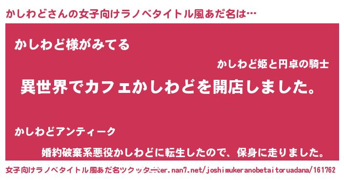 | ヘコむあだ名 | 『かしわど(遠い目)』『かしを』 |