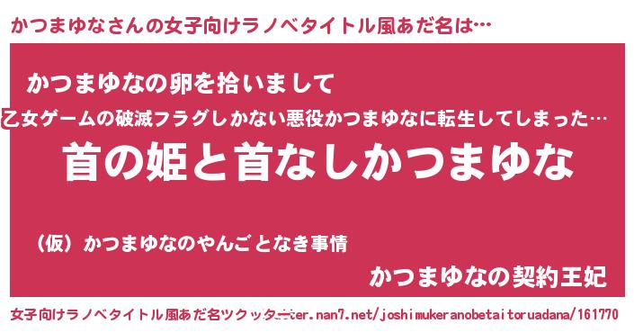 | 男性向けラノベタイトル風あだ名 | 『はたらくかつまゆなさま!』 |
