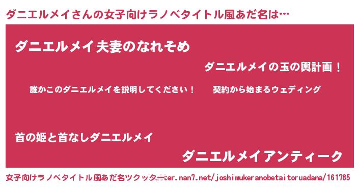 | 男性向けラノベタイトル風あだ名 | 『ダニエルメイアートオンライン』 |