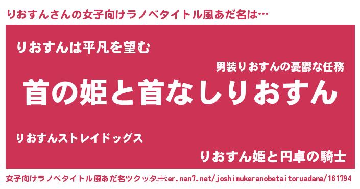 | 胡散臭い通販商品みたいなあだ名 | 『信頼と実績のサプリメント…その名も「りおすん」』 |