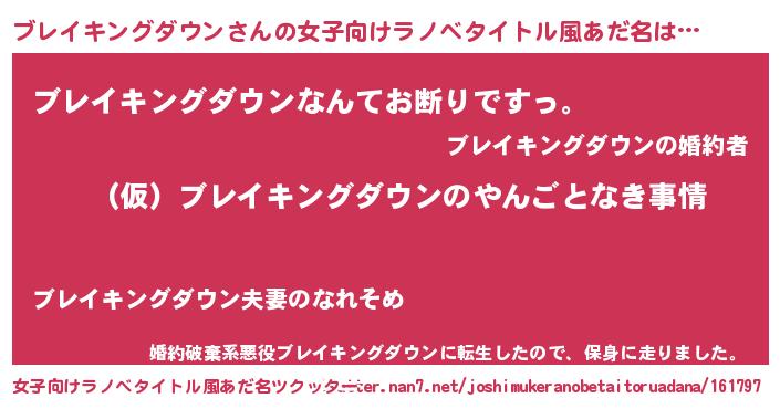 | 男性向けラノベタイトル風あだ名 | 『ブレイキングダウンの憂鬱』 |