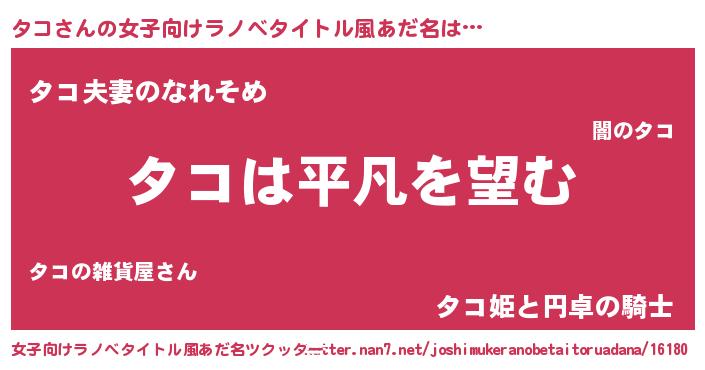 | ポケモン風あだ名 | 『ヒタコ』『タックウザ』『タコダネ』 |