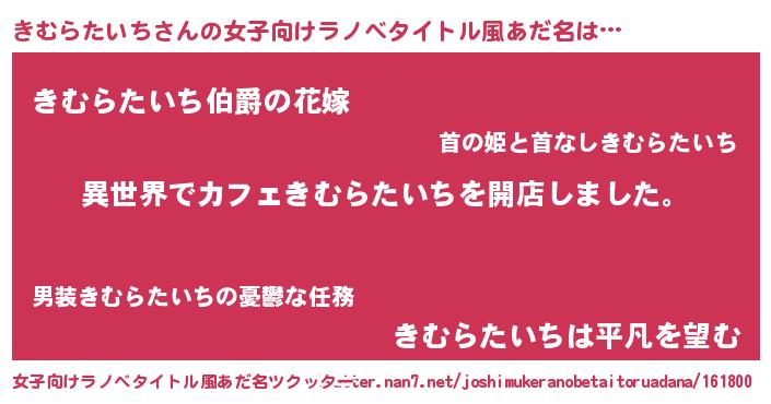 | 可愛いあだ名 | 『きむらたいちママ』『きむちー』 |