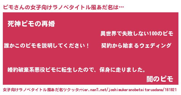 | ヘコむあだ名 | 『ピモっふぃ~』『ピモ(小並感)』 |