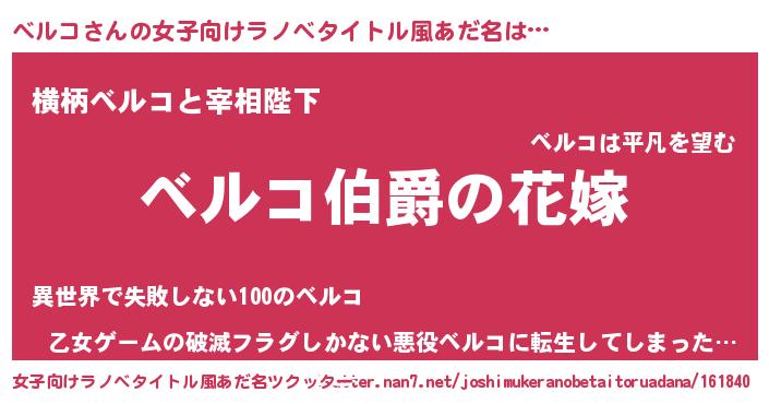 | ファンタジー風あだ名 | 『エターナルベルコー』『ヴァルベルーナ』 |