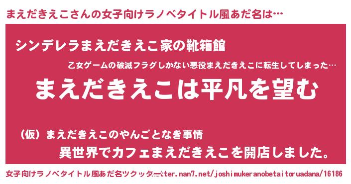 | 男性向けラノベタイトル風あだ名 | 『ダンジョンにまえだきえこを求めるのは間違っているだろうか』 |