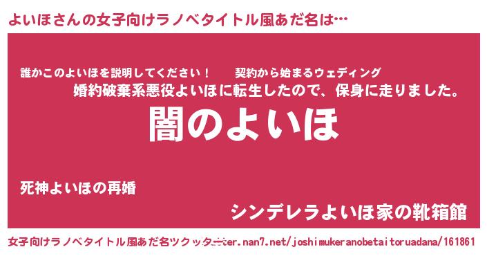 | 男性向けラノベタイトル風あだ名 | 『Re:よいほから始める異世界生活』 |