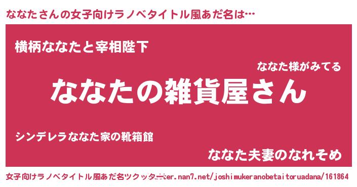 | ヒーロー風カッコイイあだ名 | 『ウルトラななたマン』『暗黒騎士ナナ』 |