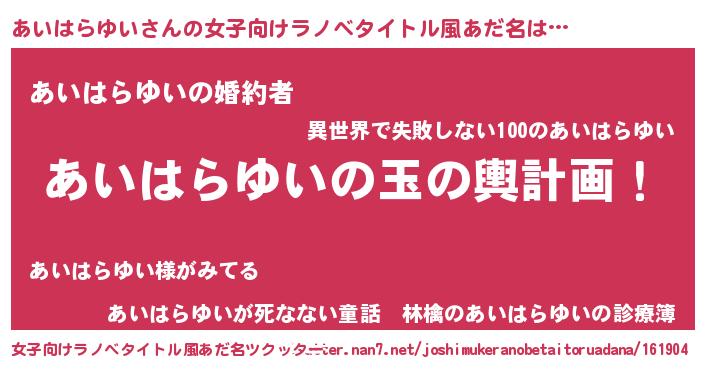 | 男性向けラノベタイトル風あだ名 | 『転生したらあいはらゆいだった件』 |