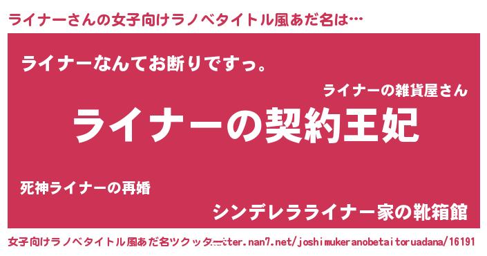 | 可愛いあだ名 | 『ライナーママ』『ライうちぇる』 |