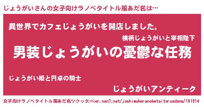 | 男性向けラノベタイトル風あだ名 | 『うちのじょうがいが世界を掌握している!』 |