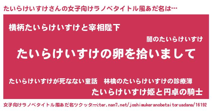 | 男性向けラノベタイトル風あだ名 | 『ダンジョンにたいらけいすけを求めるのは間違っているだろうか』 |