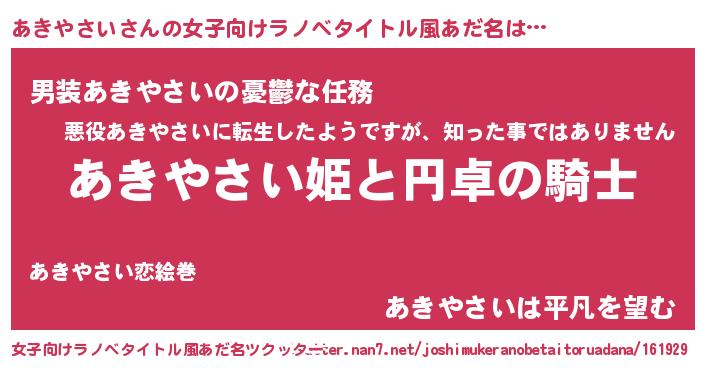 | 男性向けラノベタイトル風あだ名 | 『アキヤサイアートオンライン』 |