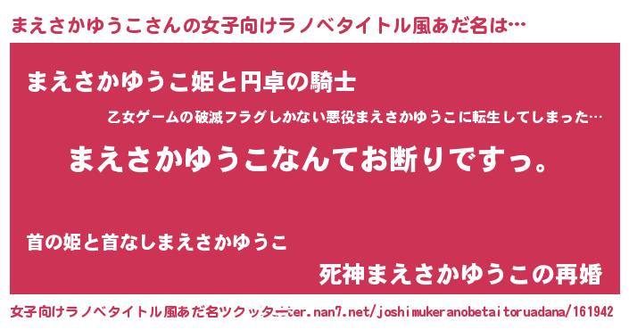 | 意味不明あだ名 | 『自称まえさかゆうこ』 |
