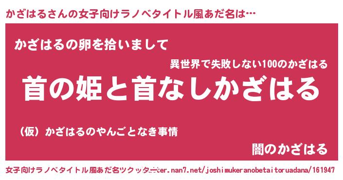 | 胡散臭い通販商品みたいなあだ名 | 『信頼と実績のネックレス…その名も「かざはる」』 |