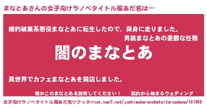 | 男性向けラノベタイトル風あだ名 | 『Re:まなとあから始める異世界生活』 |