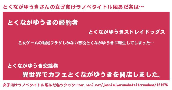 | 意味不明あだ名 | 『住所不定無職とくながゆうき(85歳)』 |