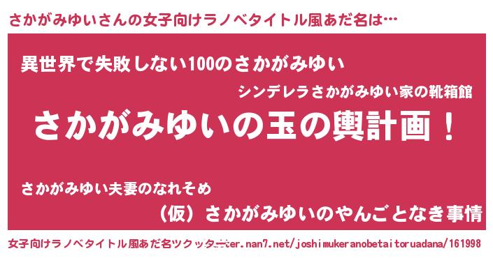| 男性向けラノベタイトル風あだ名 | 『さかがみゆい~年齢イコール彼女いない歴の魔法使い~』 |