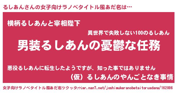 | 胡散臭い通販商品みたいなあだ名 | 『モテモテ間違いなしブレスレット…その名も「るしあん」』 |