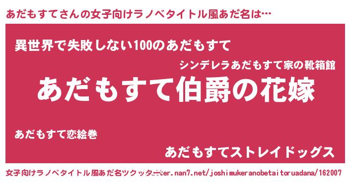 | 意味不明あだ名 | 『あだもすてフォーエバー』 |
