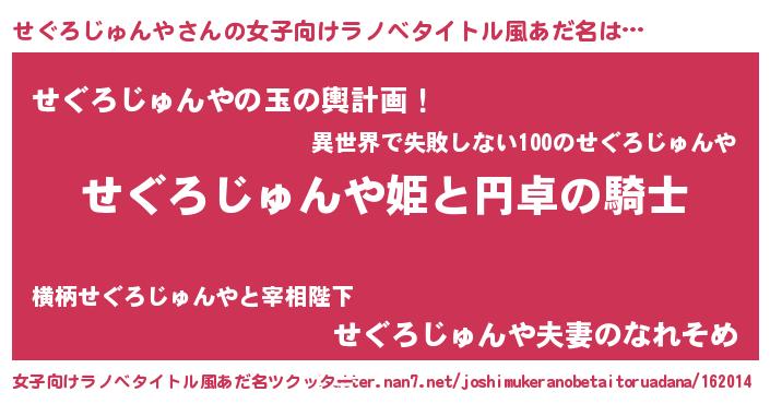 | 男性向けラノベタイトル風あだ名 | 『セグロジュンヤアートオンライン』 |