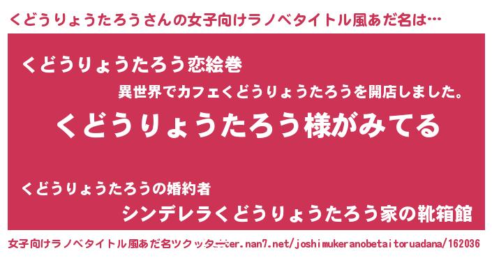 | 男性向けラノベタイトル風あだ名 | 『くどうりょうたろうの嫁は女の子じゃないと思った?』 |