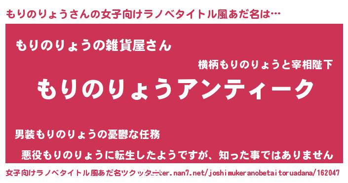 | 男性向けラノベタイトル風あだ名 | 『魔法科高校のもりのりょう』 |