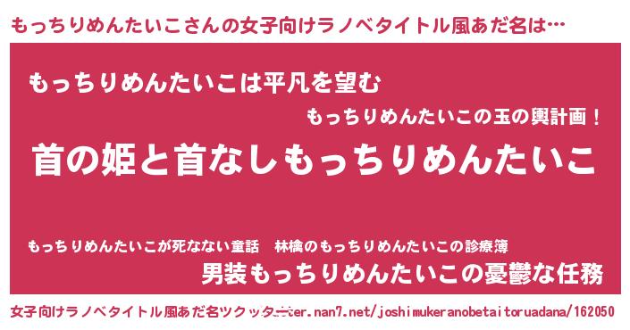 | 男性向けラノベタイトル風あだ名 | 『はたらくもっちりめんたいこさま!』 |