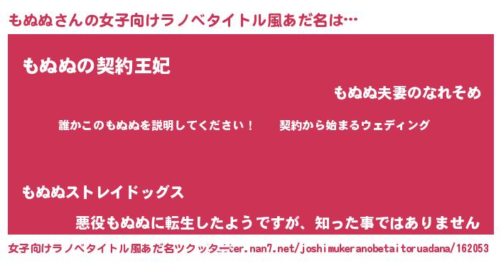 | 男性向けラノベタイトル風あだ名 | 『モヌヌアートオンライン』 |
