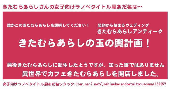 | 胡散臭い通販商品みたいなあだ名 | 『億万長者になれるブレスレット…その名も「きたむらあらし」』 |