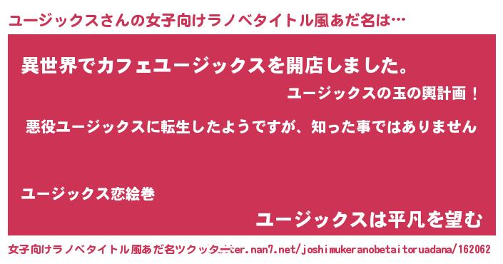 | 男性向けラノベタイトル風あだ名 | 『この素晴らしい世界にユージックスを!』 |
