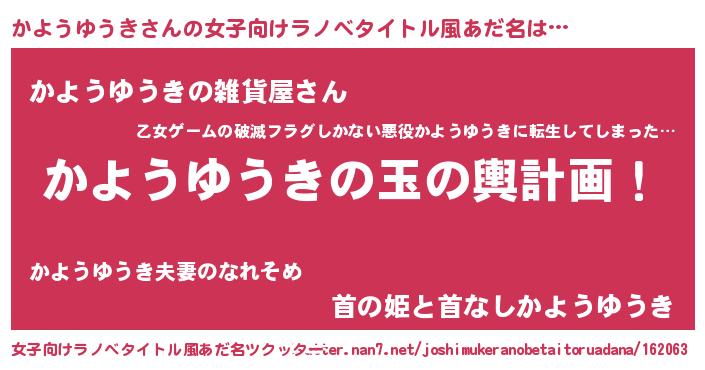 | 男性向けラノベタイトル風あだ名 | 『転生したらかようゆうきだった件』 |