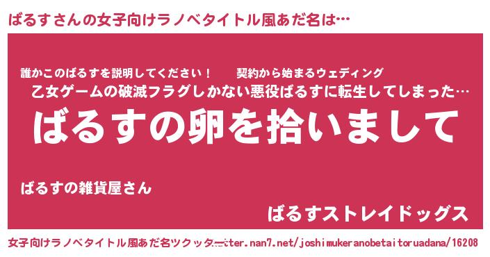| 意味不明あだ名 | 『とにかく怪しいばるす』『自称ばるす』 |