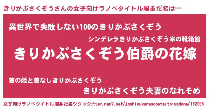 | ファンタジー風あだ名 | 『エターナルキリカブサクゾウー』 |