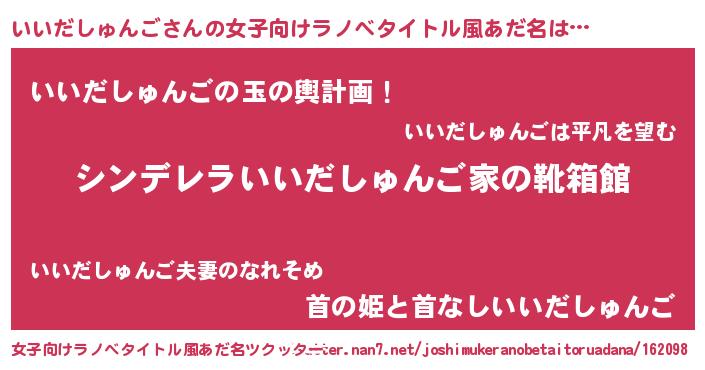 | 胡散臭い通販商品みたいなあだ名 | 『信頼と実績のサプリメント…その名も「いいだしゅんご」』 |