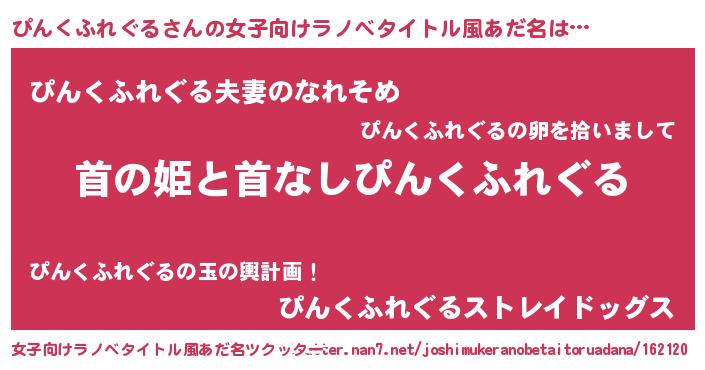 | 男性向けラノベタイトル風あだ名 | 『はたらくぴんくふれぐるさま!』 |