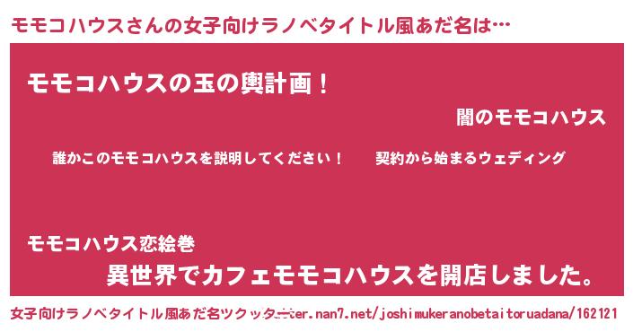 | 男性向けラノベタイトル風あだ名 | 『モモコハウスアートオンライン』 |