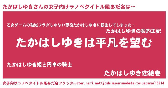| 胡散臭い通販商品みたいなあだ名 | 『信頼と実績のサプリメント…その名も「たかはしゆき」』 |