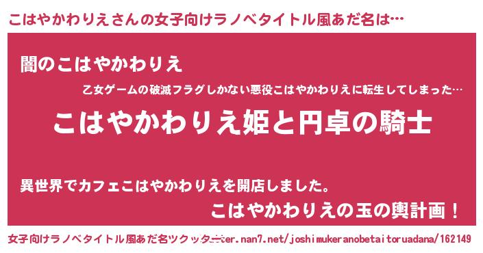 | 男性向けラノベタイトル風あだ名 | 『こはやかわりえの憂鬱』 |