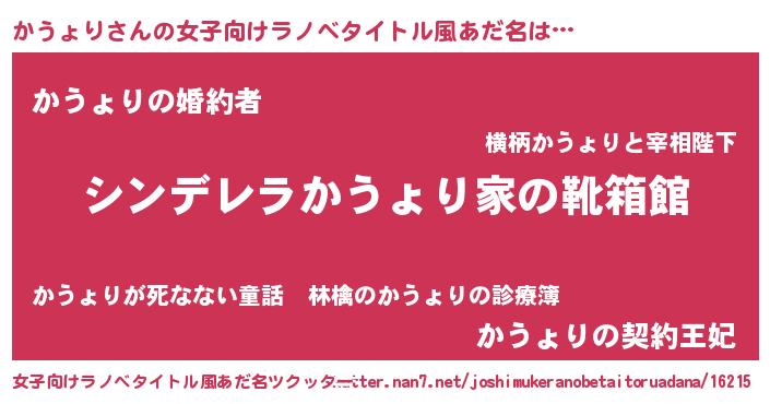 | 男性向けラノベタイトル風あだ名 | 『緋弾のカウョリ』『魔弾の王とかうょり』 |