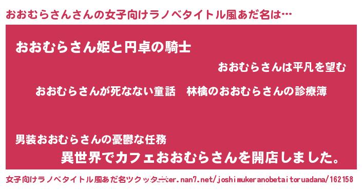 | 意味不明あだ名 | 『住所不定無職おおむらさん(50歳)』 |