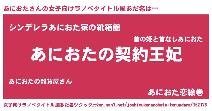 | 胡散臭い通販商品みたいなあだ名 | 『来世でも幸せになれる水素水…その名も「あにおた」』 |