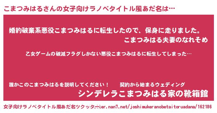 | 男性向けラノベタイトル風あだ名 | 『この素晴らしい世界にこまつみはるを!』 |