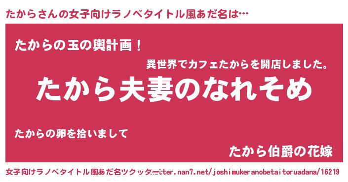 | 欧米人風あだ名 | 『ダニエルたから』『トリンドルたから』 |