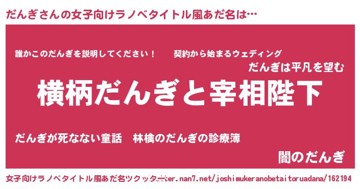 | 男性向けラノベタイトル風あだ名 | 『だんぎに滅ぼされるだけの簡単なお仕事です』 |